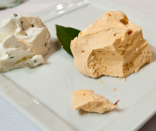 Speaking of the butters, they came cold - too cold. The plate was slightly wet with condensation, so it seemed apparent that the butter wasn't plated for us, but prepared beforehand. Normally, I would have no problem with this, except the butter had been whipped and then chilled too much, so it broke and crumbled when I pressed my knife down on it. It was unspreadable. Seems like an amateur mistake for a restaurant that shouldn't be making amateur mistakes. A first of many.