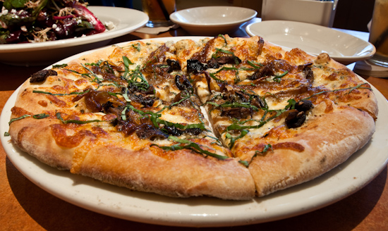 Wild Mushroom Pizza. (The crust tasted of fermented dough and slight saltiness - excellent considering so many pizzas we've tried have a nearly flavorless crust. The crust was also crispy on the bottom and just a little bit chewy - great texture. The toppings worked well with each other - the caramelized onions added a sweetness that didn't overpower the mushrooms.)
