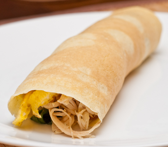 Dinner: I ate the last couple crepes filled with shredded chicken breast, egg strips, and spinach.