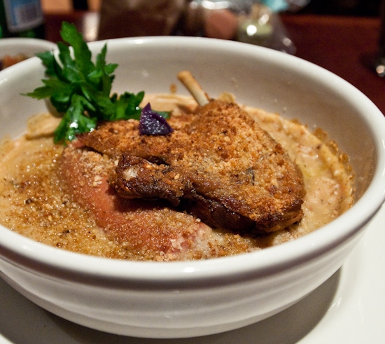 Cassoulet comme a toulouse (white beans with duck confit and sausage) - awesome comfort food. Perfect for a cold winter night. White beans were cooked to near mush, but flavorful and warming. Served with breadcrumbs on top. Sausage had a medium grind texture with some chewy bits (good chewy) but at the same time surprisingly soft and juicy. The duck confit was perfect with skin so crispy that it was… well crispy - even the part sitting in the beans while we ate. Flavor was excellent. ($25)