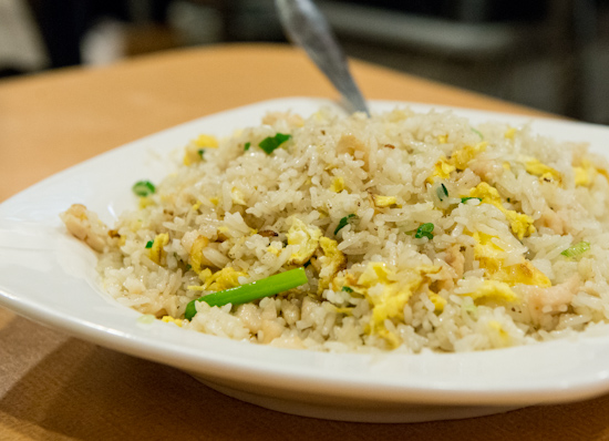 Chicken Fried Rice ($7.99). I wanted a simple fried rice dish and ordered this. I figured that unless the rice came out soggy or it was undersalted, it was hard to screw up chicken fried rice. (As opposed to pork fried rice or yang chow fried rice where the pork components can give an off taste if stale. Chicken is less often stale in Chinese restaurants than pork, so I erred on the side of caution. Please note, there was nothing that made me suspect Fu Fu Cafe would have stale pork… I just didn't feel like potentially going down that path this evening.) We noted that the rice had a tasty hint of char to it which means they use a very hot wok (a good sign). The rice was properly salted and the rice were not clumping together or soggy.